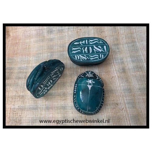 Prachtige handgemaakte en zeer gedetailleerde groene scarabeeën. Deze scarabeeën zijn gemaakt door ambachtelijke arbeiders op de westbank in Luxor